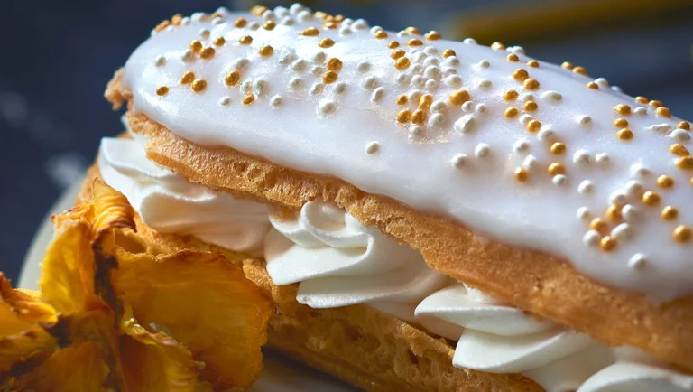 - 6. Place in a piping bag with an éclair tip and pipe on a silicone-lined pan.