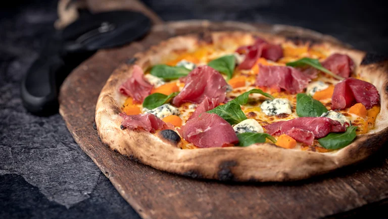 Experience the bold and tasty flavours of a blue cheese pizza with this simple and indulgent recipe. This pizza combines the rich, tangy notes of blue cheese with earthy pumpkin and savoury bresaola. So, if you're looking for a new pizza with bold flavours to add to your pizza menu, this recipe hits home every time. Dive into the full recipe and savour the irresistible taste of a blue cheese pizza on your plate.